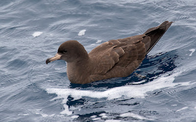 Up early the next day and down to the wharf in time to meet the skipper. I'd had a bad night and felt decidedly unwell after dinner in the pub the previous evening. Sue later told me she'd felt a bit off too. Most of the boat trip I was feeling quite uncomfortable and drifted in and out of bouts of nausea. Hope for a new bird or two managed to keep me going and there was certainly a lot of birds out there this trip once we got to the shelf break. The birds were quite voracious too having obviously not fed well for a day or two. We started getting both Grey-faced and Great-winged Petrels as well as White-chinned Petrels along with Flesh-footed Shearwaters, Short-tailed and Sooty Shearwaters. It was the day of the "brown birds" that's for sure. Albatross were reasonably well represented with lots of adult Shys and a few young Black-broweds and a single young Campbells picked out of the crowd.